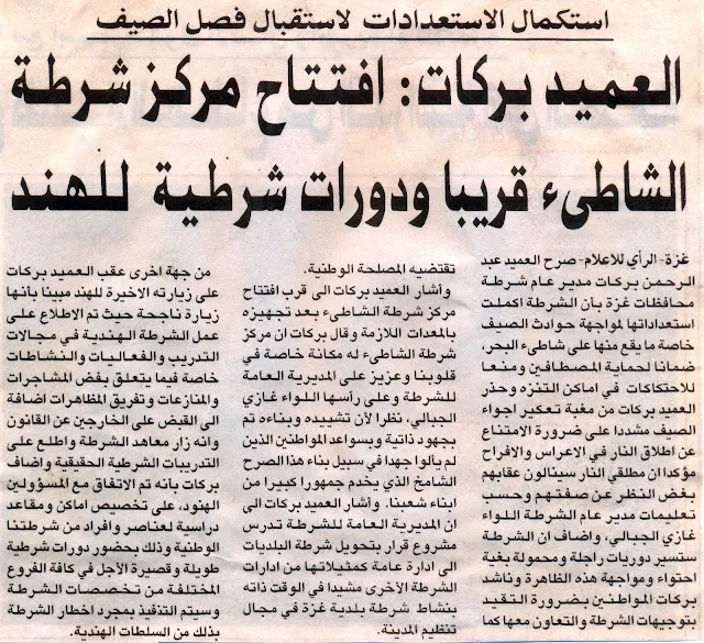 العميد بركات : إفتتاح مركز شرطة الشاطىء قريباً ودورات شرطية للهند
